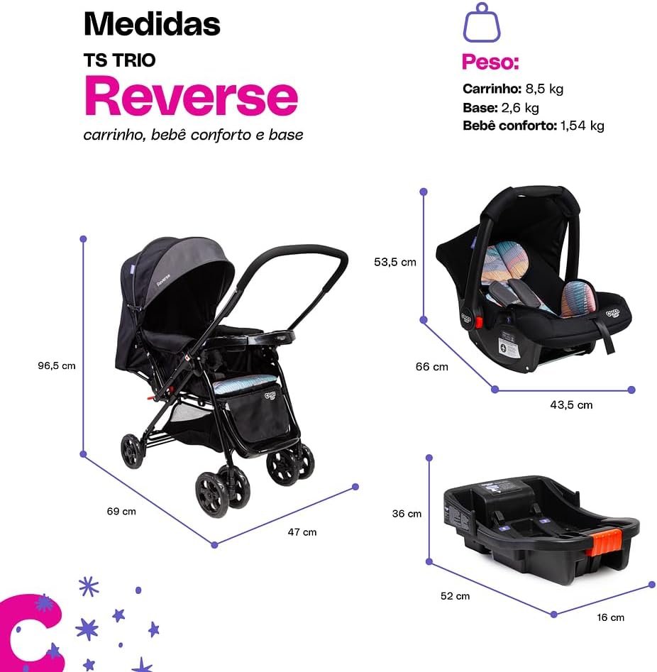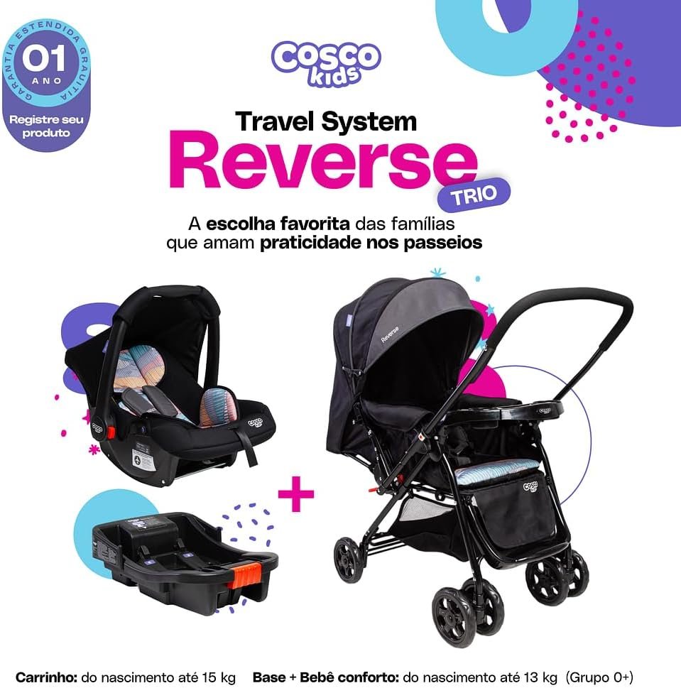 Travel System Cosco Kids, Reverse Trio, Preto Onda