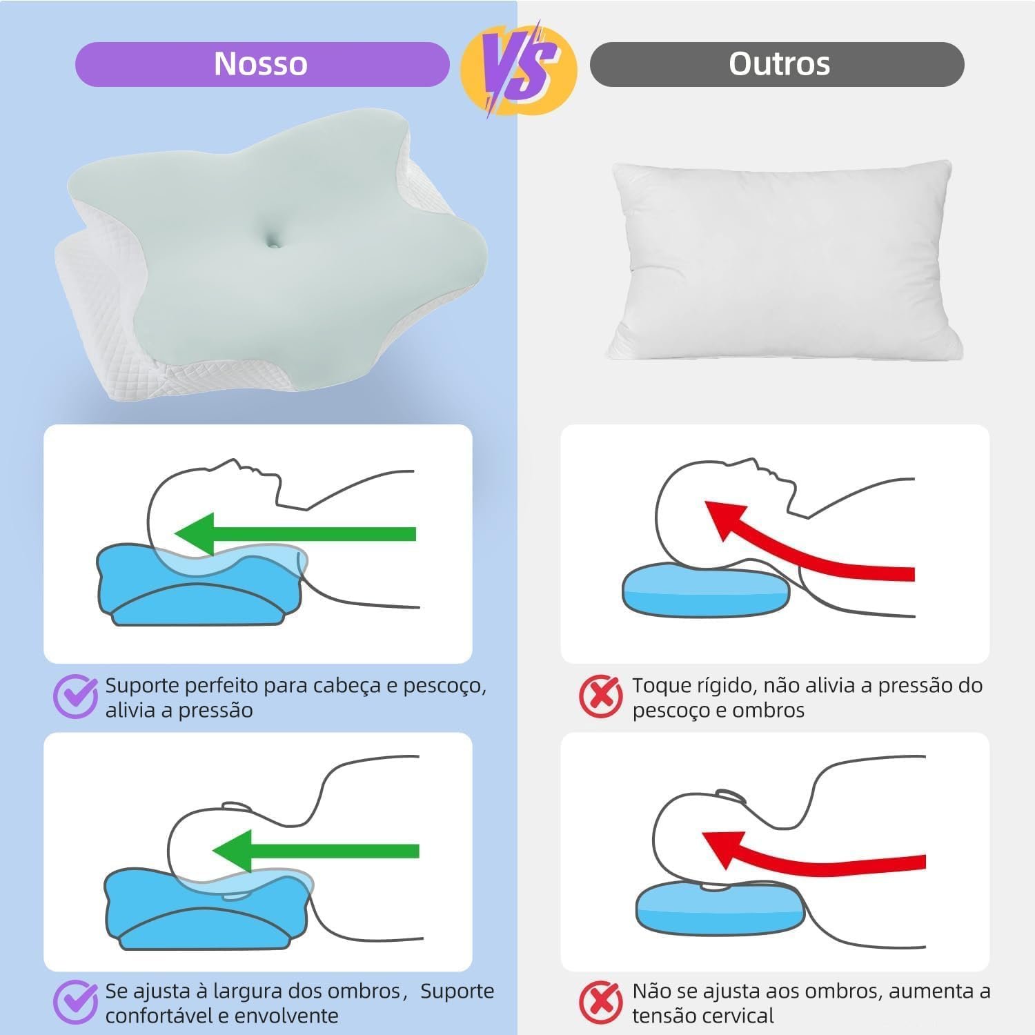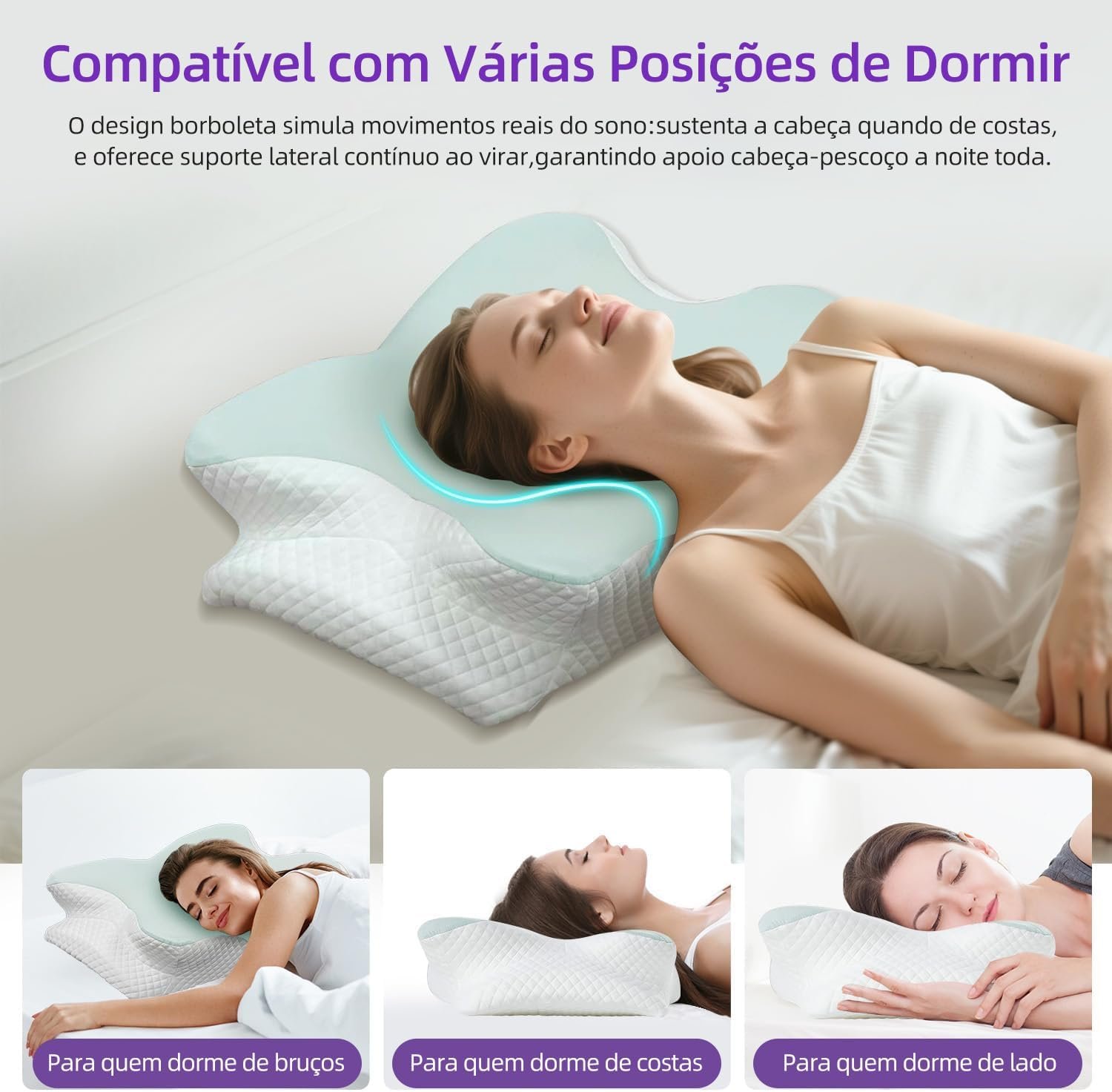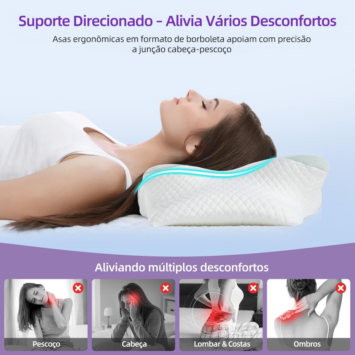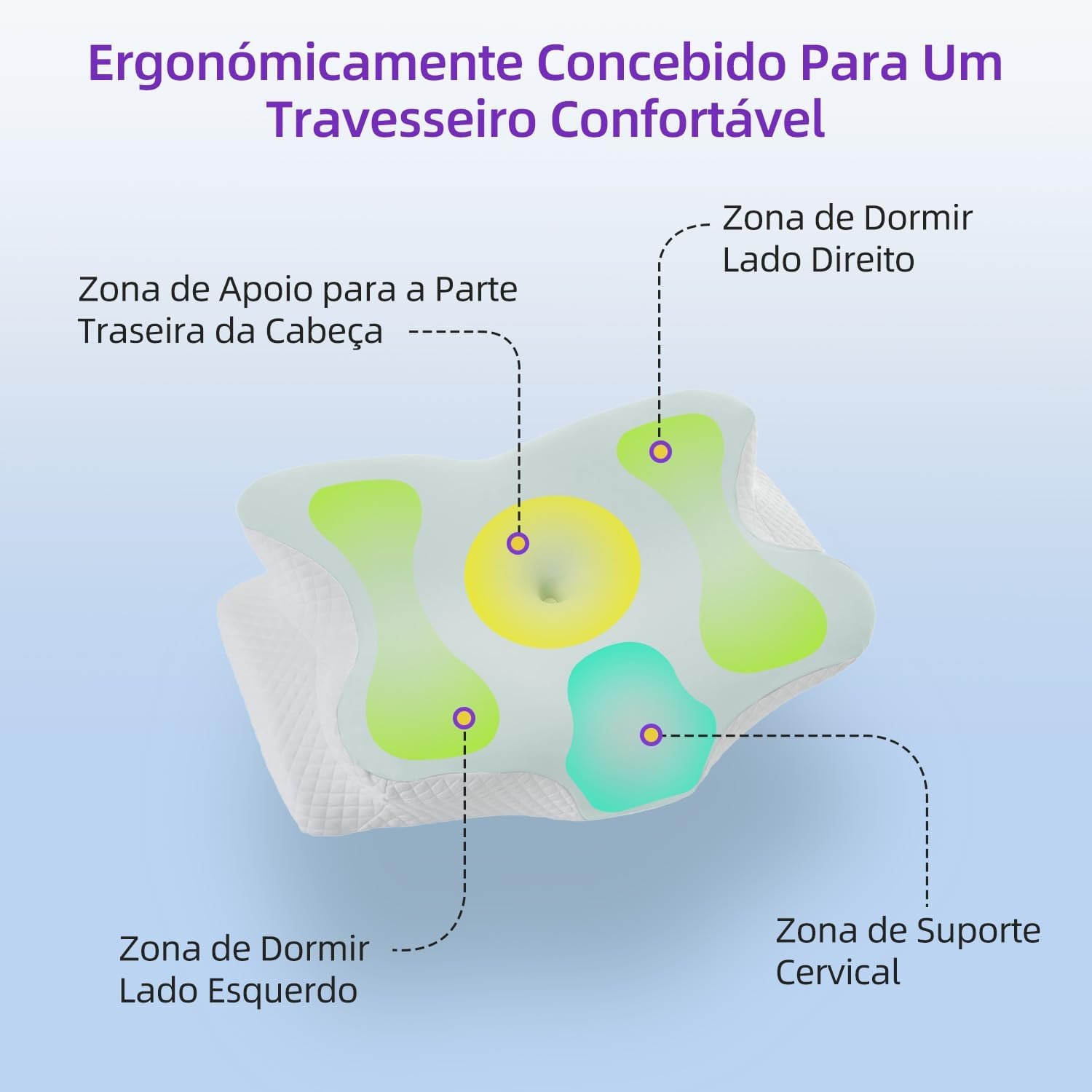 Travesseiro Ergonômica de Alívio de Dor no Pescoço com Memória, Ajustável e Resfriamento, Travesseiro Ortopédico para Dormir de Costas, Lado ou Barriga – Conforto, Suporte e Bem-estar (Azul)