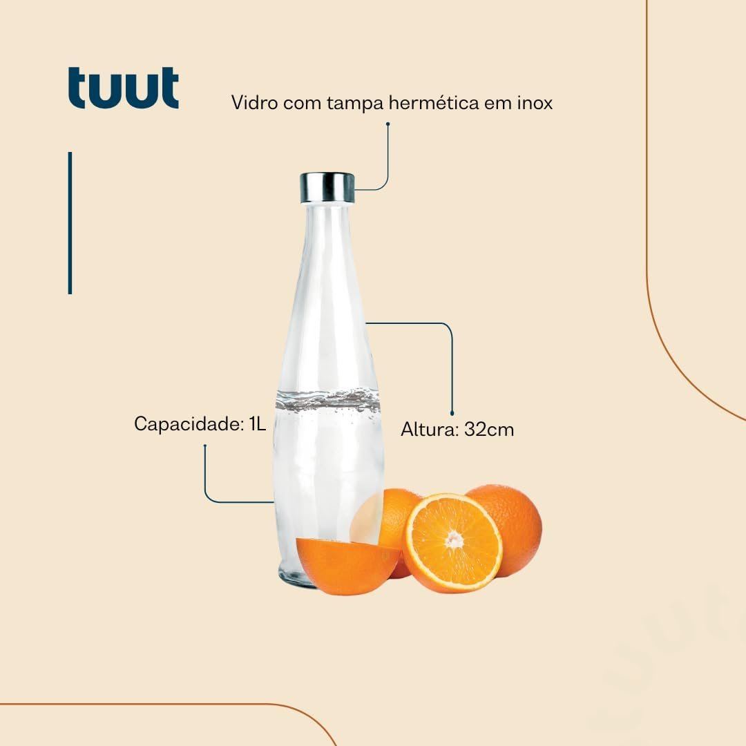 Tuut Garrafa Acqua para Água em Vidro com Tampa Inox 1L – Hermética e Fácil Limpeza