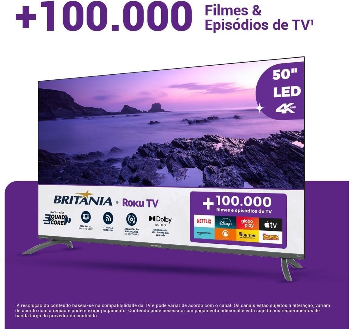TV Smart TV 50” Britânia Roku TV LED Dolby Audio BTV50VA4REGB