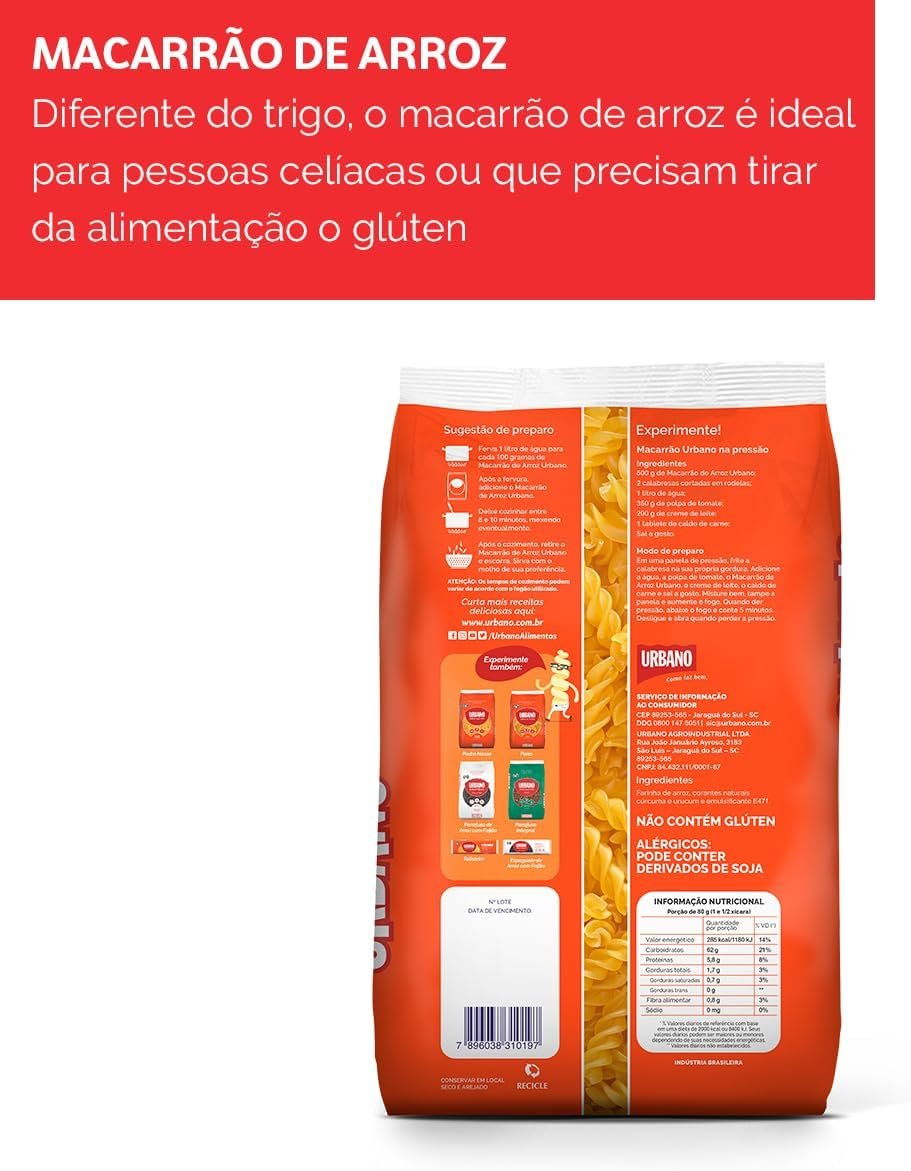 Experimente o delicioso Macarrão de Arroz Parafuso Urbano Zero Glúten! Com 500g de pura qualidade e sabor inigualável, este macarrão é a opção perfeita para uma alimentação saudável e leve. Feito com ingredientes naturais, é ideal para celíacos e para quem busca uma dieta livre de glúten. Adquira já o seu e descubra uma nova forma de saborear massas!
