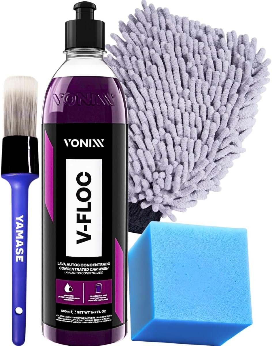 V-floc 500ml Shampoo Neutro Para Lavar o Carro Moto Caminhão + Luva de Microfibra Tentaculos + Pincel