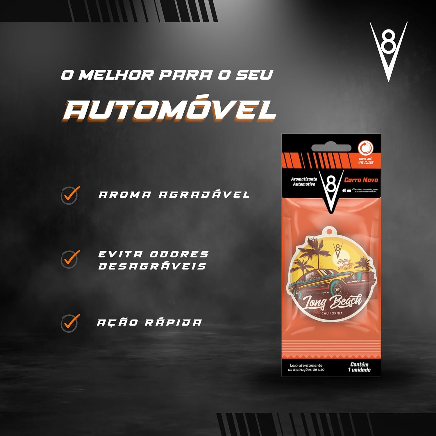 V8, Perfumador de ambientes para automóveis (Aromatizador de ar) em Sachê, Aroma Carro Novo, 1 Unidade, Laranja