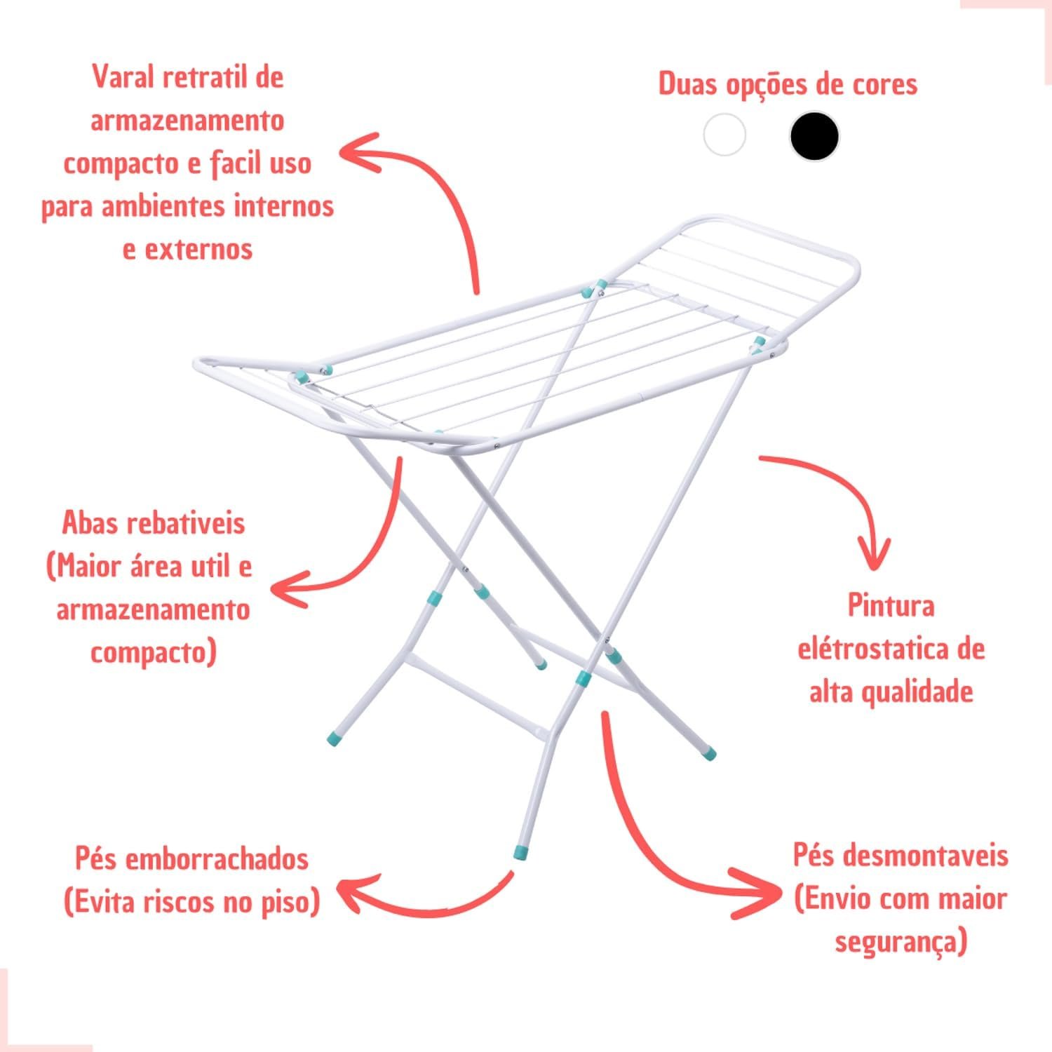 Varal Portátil De Chão Com Abas Dobráveis Não Enferruja (Branco)