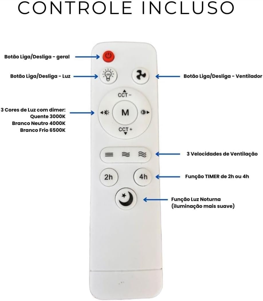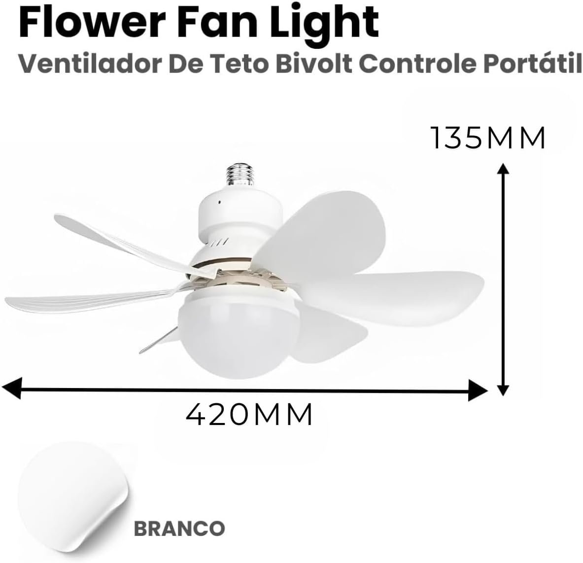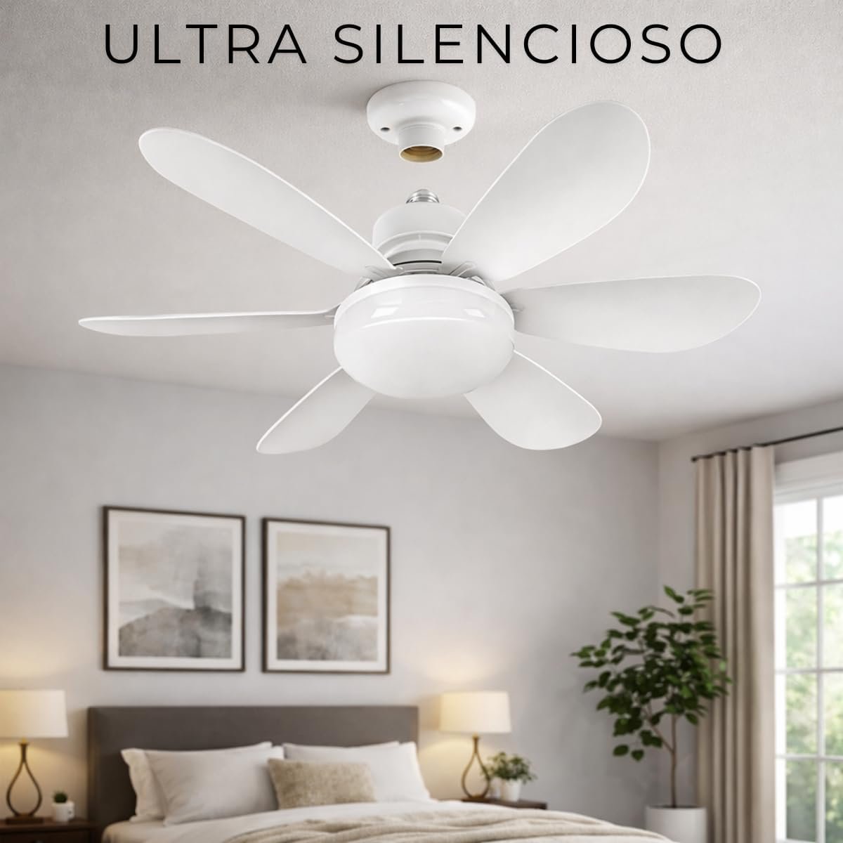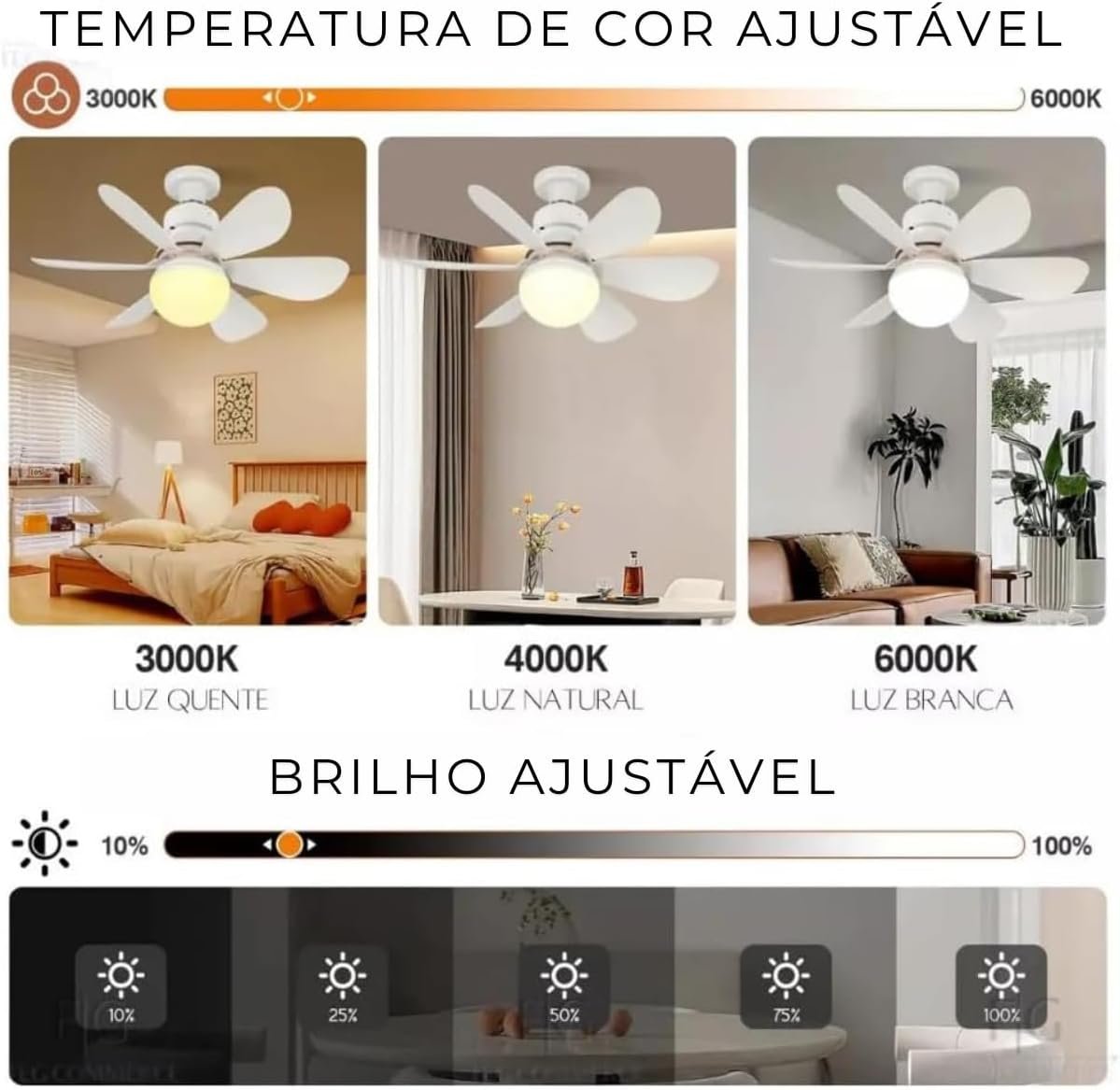 Ventilador de Teto Potente 65W com Lâmpada LED Encaixe E27 Ultra Silencioso Mais Potente e Inteligente com Controle Remoto Premium