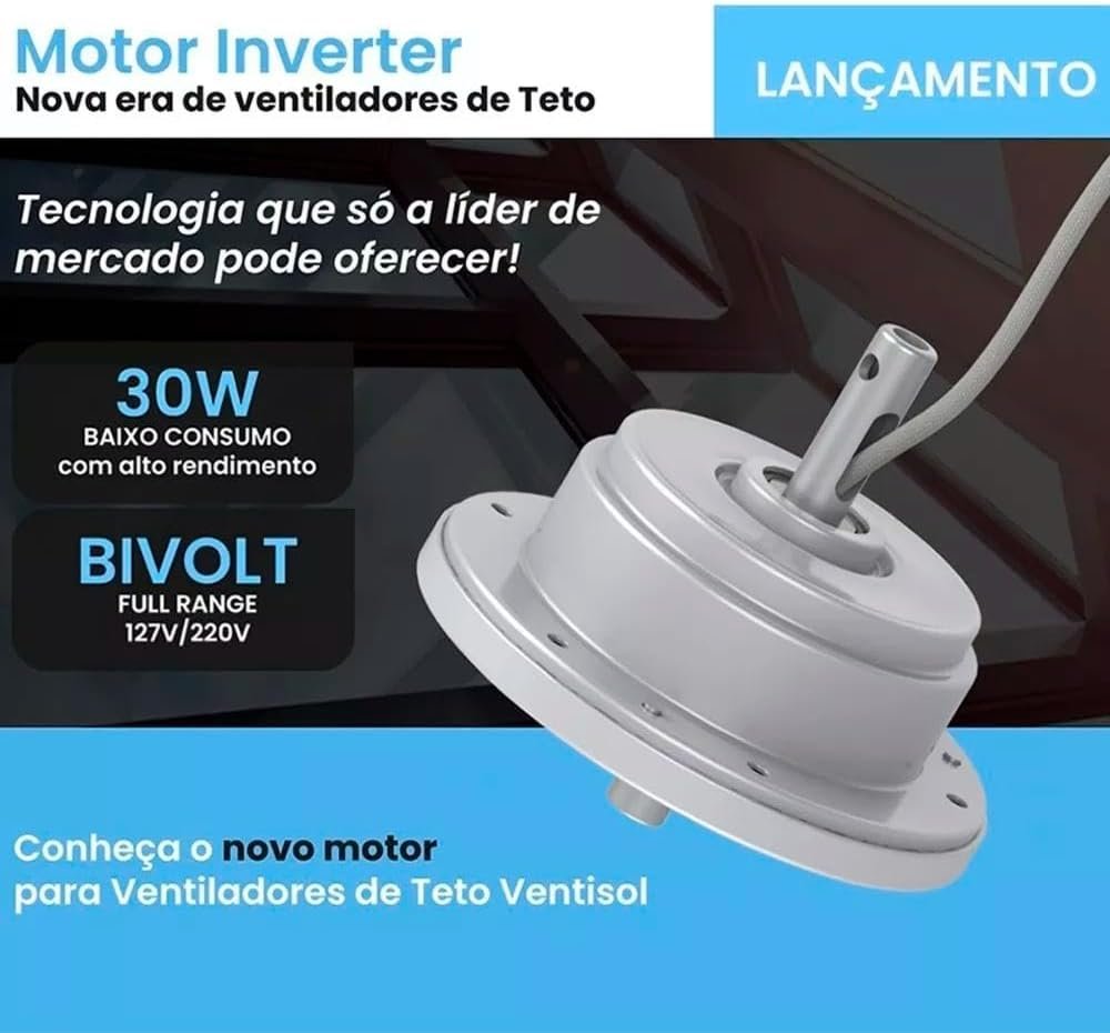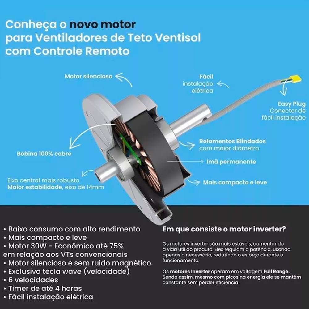 Ventilador de teto Ventisol Fenix inverter controle remoto placa led integrada