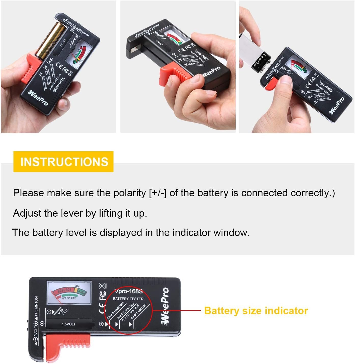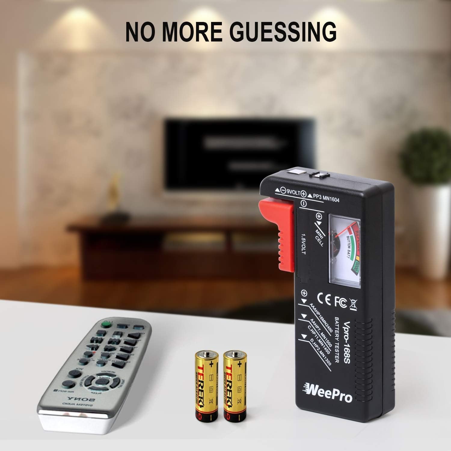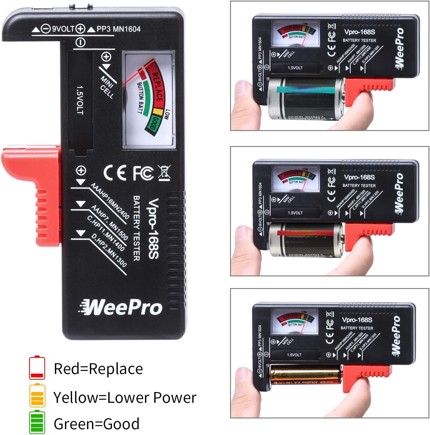 Verificador de bateria WeePro – Monitor de teste de bateria universal para pilhas AA AAA C D 9V 1,5V – Medidor de potência para testadores de nível de vida da bateria doméstica