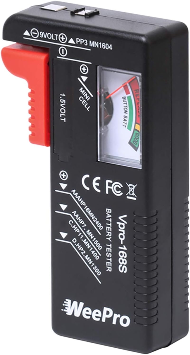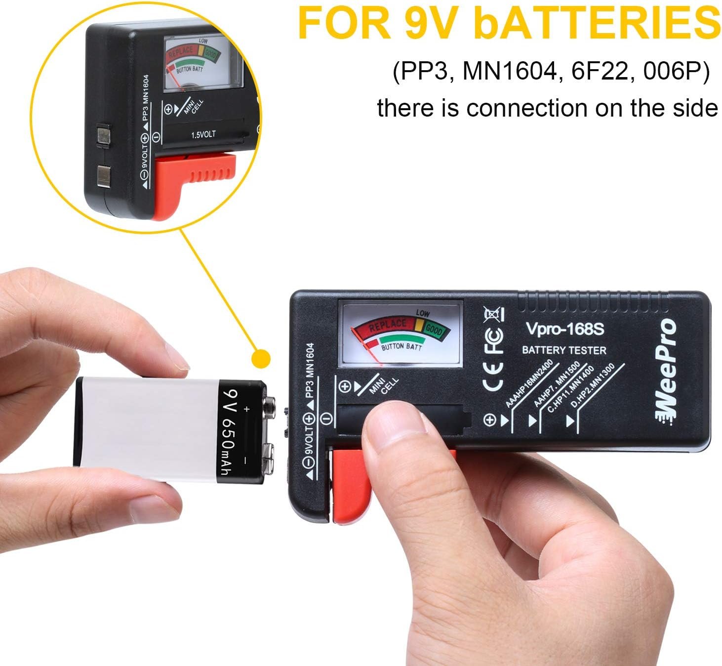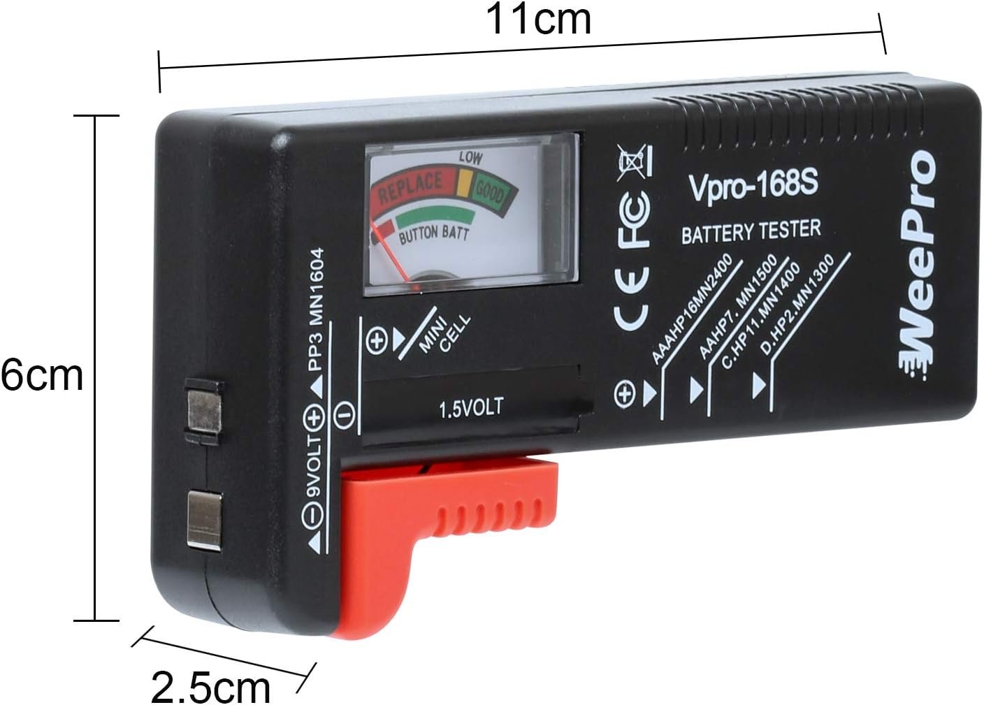 Verificador de bateria WeePro – Monitor de teste de bateria universal para pilhas AA AAA C D 9V 1,5V – Medidor de potência para testadores de nível de vida da bateria doméstica