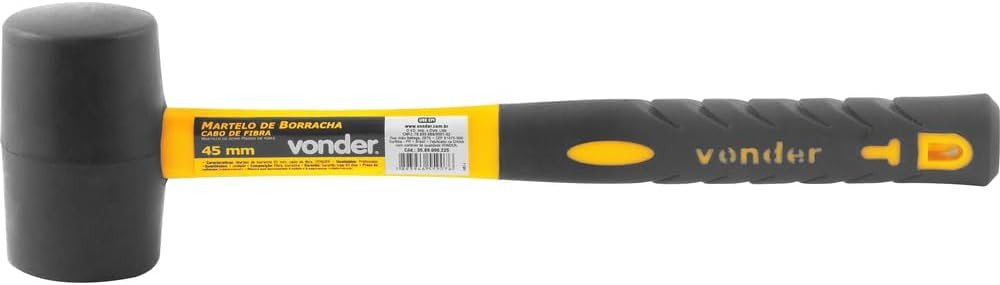 Vonder, Martelo De Borracha 45 Mm, Cabo Em Fibra, Preto.