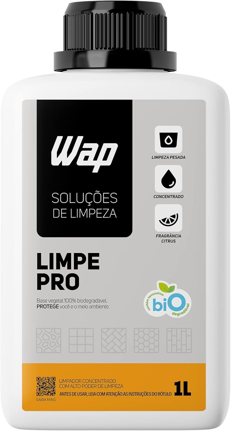 Produto em Destaque: WAP Detergente Concentrado para Limpeza Pesada de Pisos 1 LITRO WAP LIMPE PRO, Branco e Amarelo