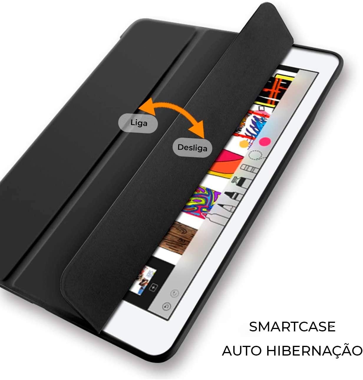 WB Capa iPad 7a, 8a e 9a Geração 10.2″ – Premium Slim, Antichoque com Compart. para Pencil – Preta