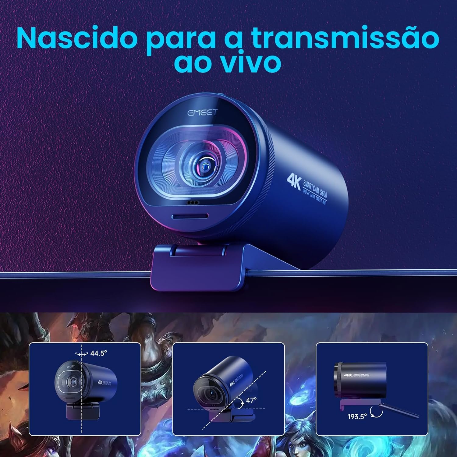 Webcam 4K com microfone, Webcam EMEET S600 Ultra HD 60FPS para transmissão com foco automático, capa de privacidade integrada, webcam USB 88°, ideal para jogos/ensino online/chamadas