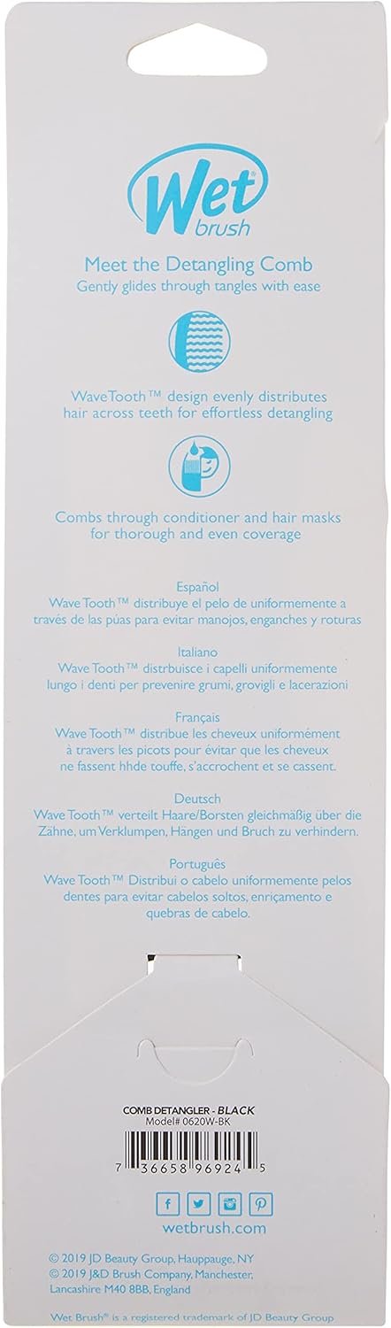 Wet Brush Pente desembaraçante, preto – Desembaraçador de pelos de dentes largos com design WaveTooth que desliza suavemente e desliza através de emaranhados – Condicionador de escova e máscaras de