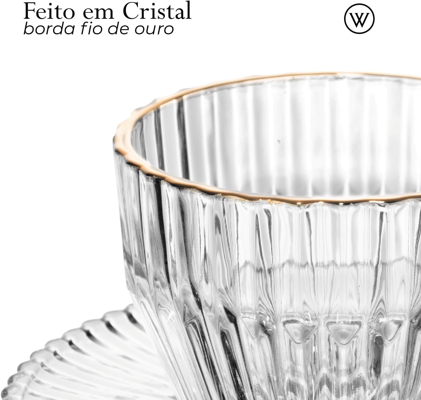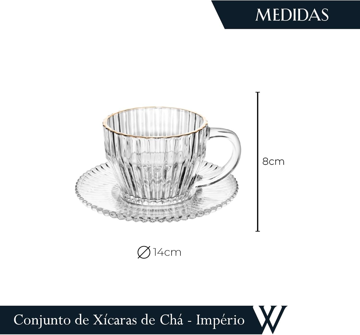 WOLFF – Conjunto 4 Xícaras de Chá de Cristal com Fio de Ouro Imperatriz 220ml