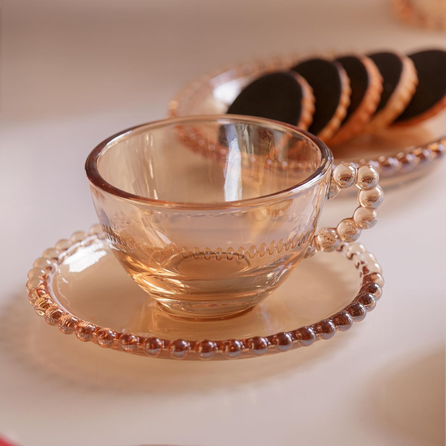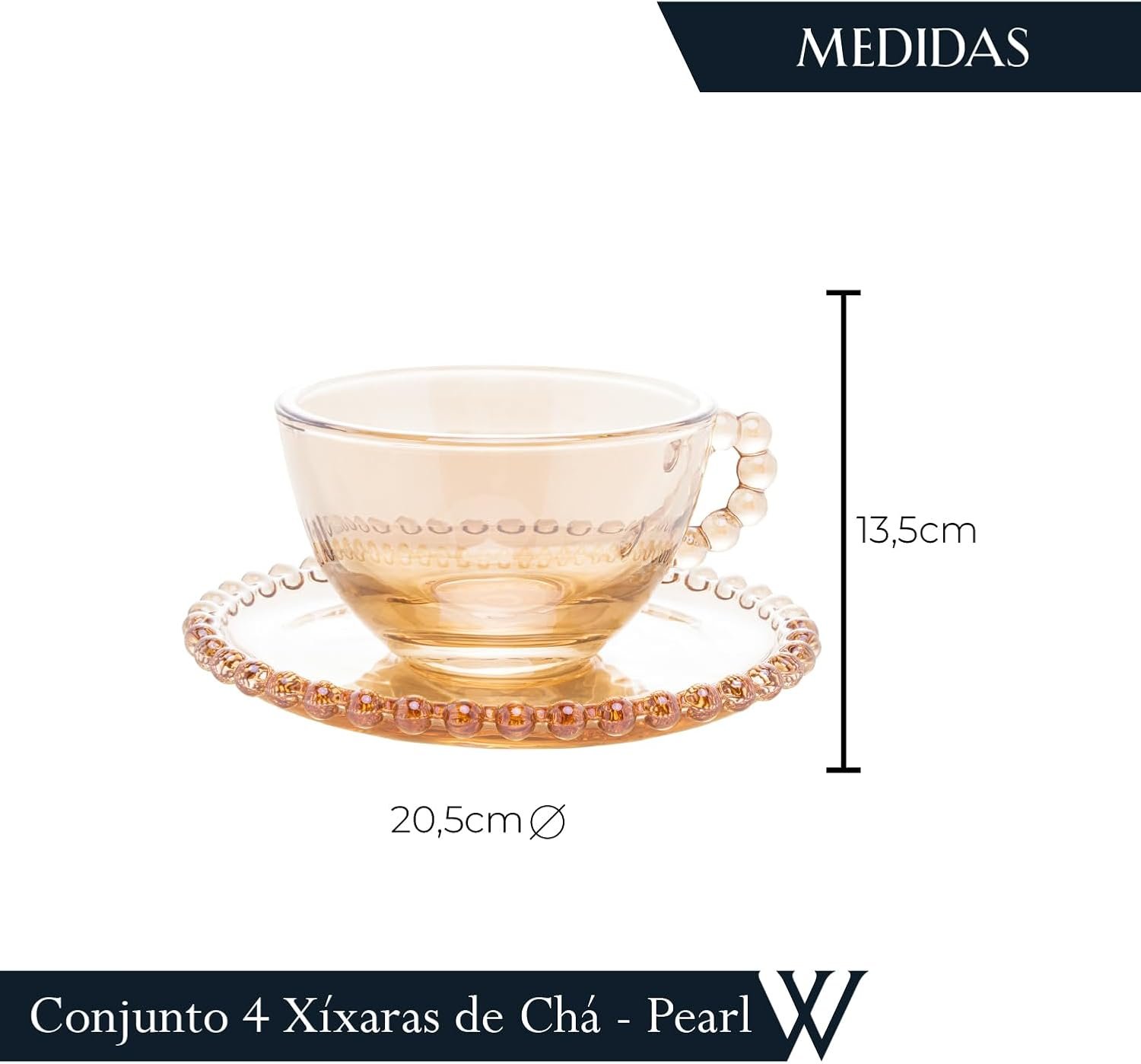 WOLFF – Conjunto de Xícaras e Pires de Cristal Pearl 180ml 4 Peças Âmbar – Mesa Posta – Itens Para Casa – Utensílios de Cozinha – Enxoval – Casamento – Decoração
