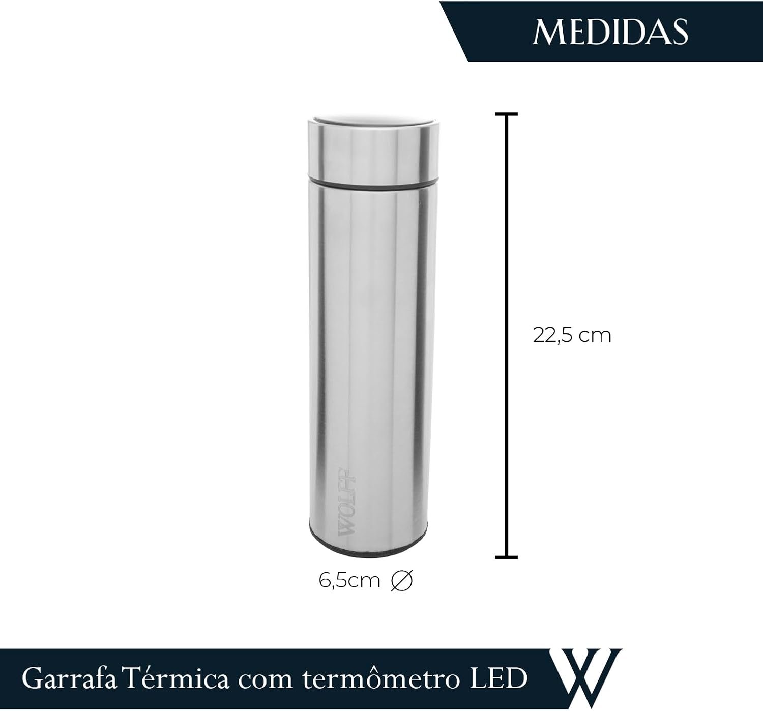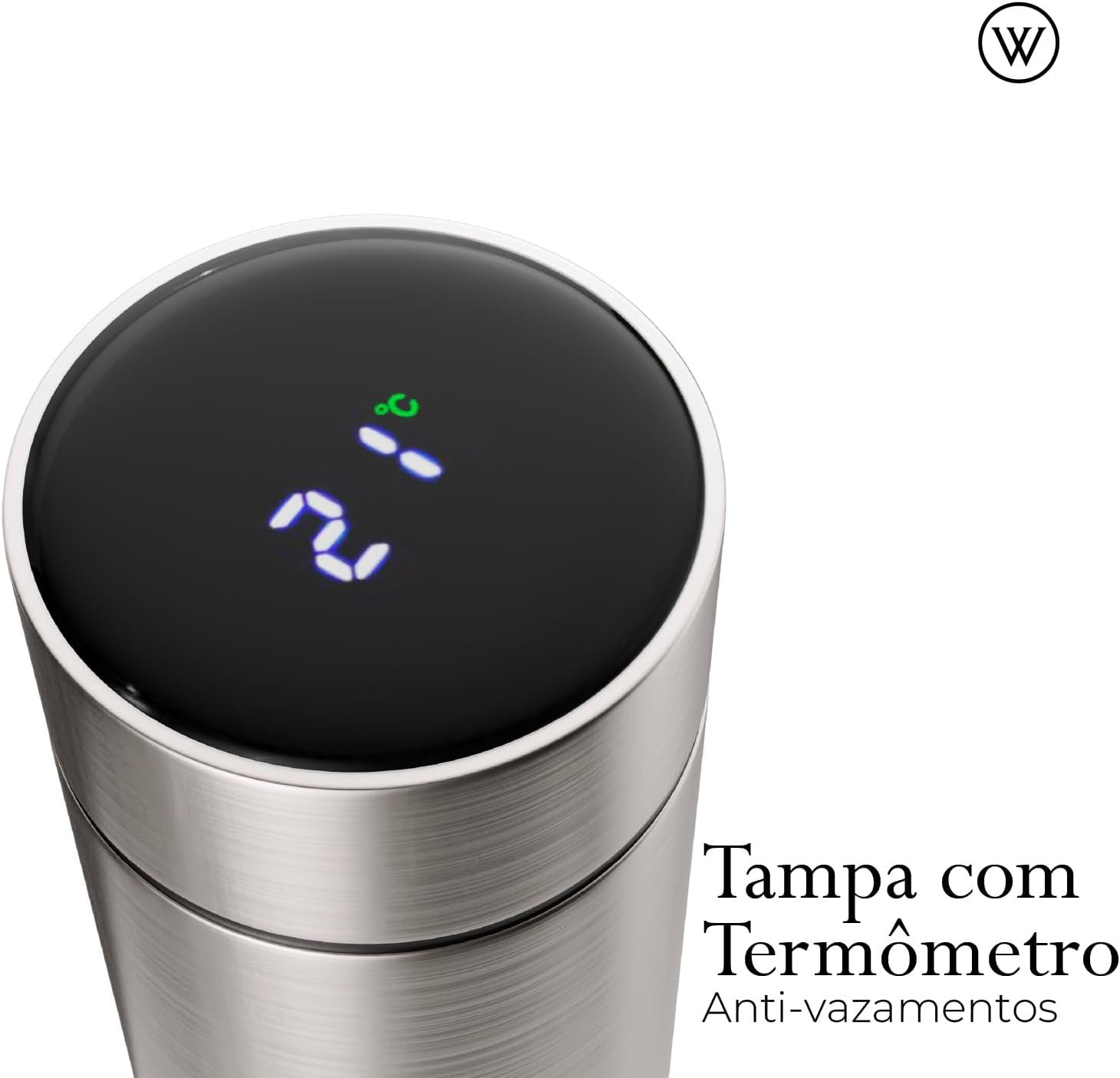 WOLFF – Garrafa Térmica de Aço Inox com Termômetro em Led 500ml – Conserva Bebidas Quentes e Frias