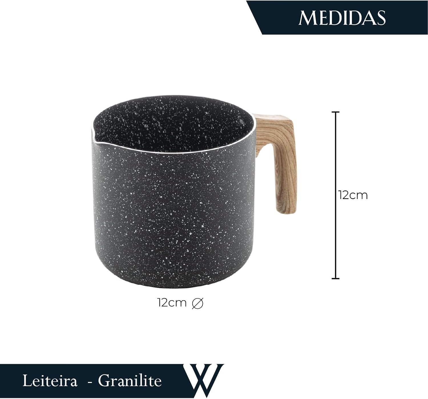 WOLFF – Leiteira de Alumínio Revestida em Cerâmica e Cabo de Silicone Granilite Preta 1,1L